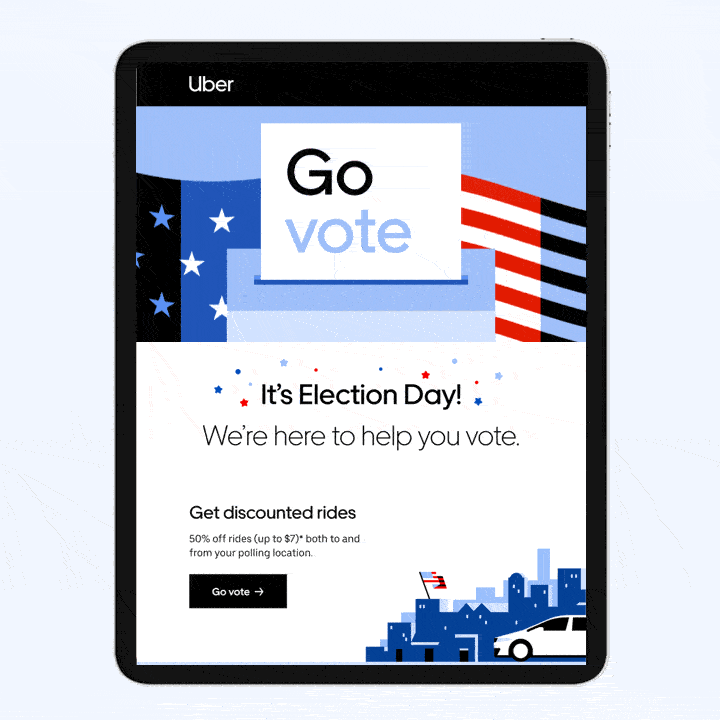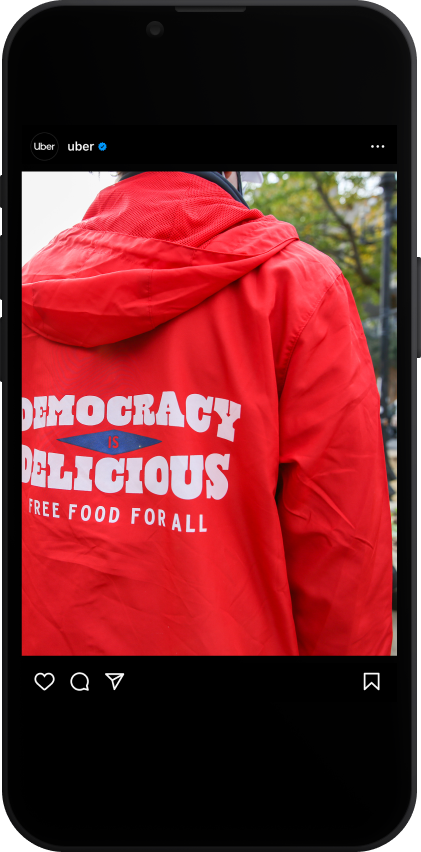As the leading mobility platform, we seized the opportunity to leverage our brand's platform, extensive reach, and key verticals, including Rides and Eats, to ensure that people from diverse racial and economic backgrounds had accessible means to exercise their right to vote.